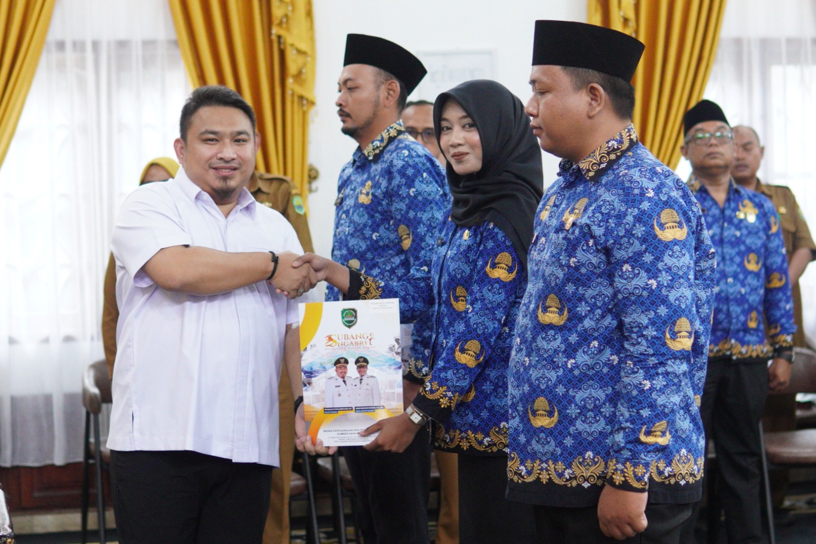 Subang,Hallo Berita Online.Com-Bupati Subang Reynaldy Putra Andita Budi Raemi secara langsung menyerahkan petikan Surat Keputusan (SK) pengangkatan serta mengambil sumpah/janji Calon Pegawai Negeri Sipil (CPNS) menjadi Pegawai Negeri Sipil (PNS) di lingkungan Pemerintah Daerah Kabupaten Subang. Kegiatan tersebut berlangsung di Aula Pendopo Rumah Dinas Bupati Subang, Selasa (21/04/2026).