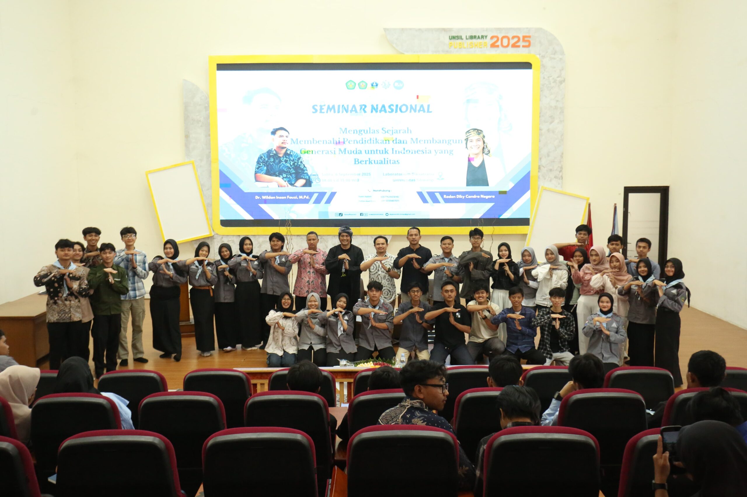 Kota Tasik, Hallo Berita Online.Com- Wakil Wali Kota Tasikmalaya Rd Diky Candranegara seusai menghadiri kegiatan puncak Milad BKPRMI Ke-48 di Dadaha lalu melanjutkan kegiatannya menghadiri kegiatan Seminar Nasional yang diadakan Himpunan Mahasiswa Pendidikan Sejarah (HIMAS) Unsil di Laboratorium Diksatrasia Universitas Siliwangi, Sabtu (06/09/25).