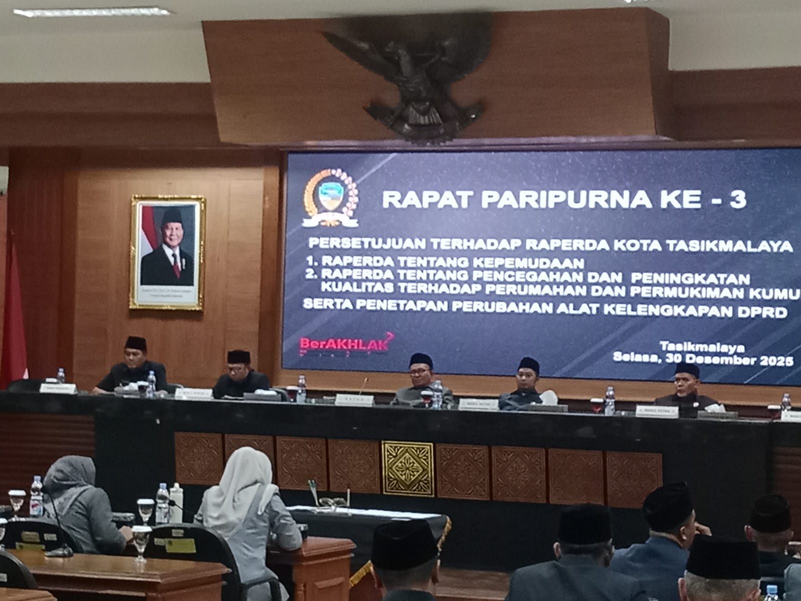 Kota Tasik,Hallo Berita Online.Com- Mengambil tempat di Ruang Paripurna, Dewan Perwakilan Rakyat Darrah (DPRD) Kota Tasikmalaya menggelar Rapat Paripurna ke-3 dengan agenda persetujuan dua Rancangan Peraturan Daerah (Raperda) yaitu Raperda tentang Kepemudaan dan Raperda Pencegahan dan Peningkatan Kualitas Perumahan dan Pemukiman kumuh, Selasa (30/12/25).