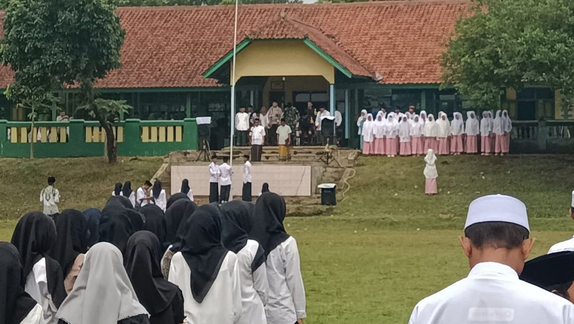 Edi Mulyana Camat Cineam Kabupaten Tasikmalaya pimpin Upacara Hari Santri Nasional Tahun 2025, tingkat Kecamatan Cineam di Lapangan sepakbola Desa Rajadatu,Selasa (22/10/2025). Berlangsung khidmat.