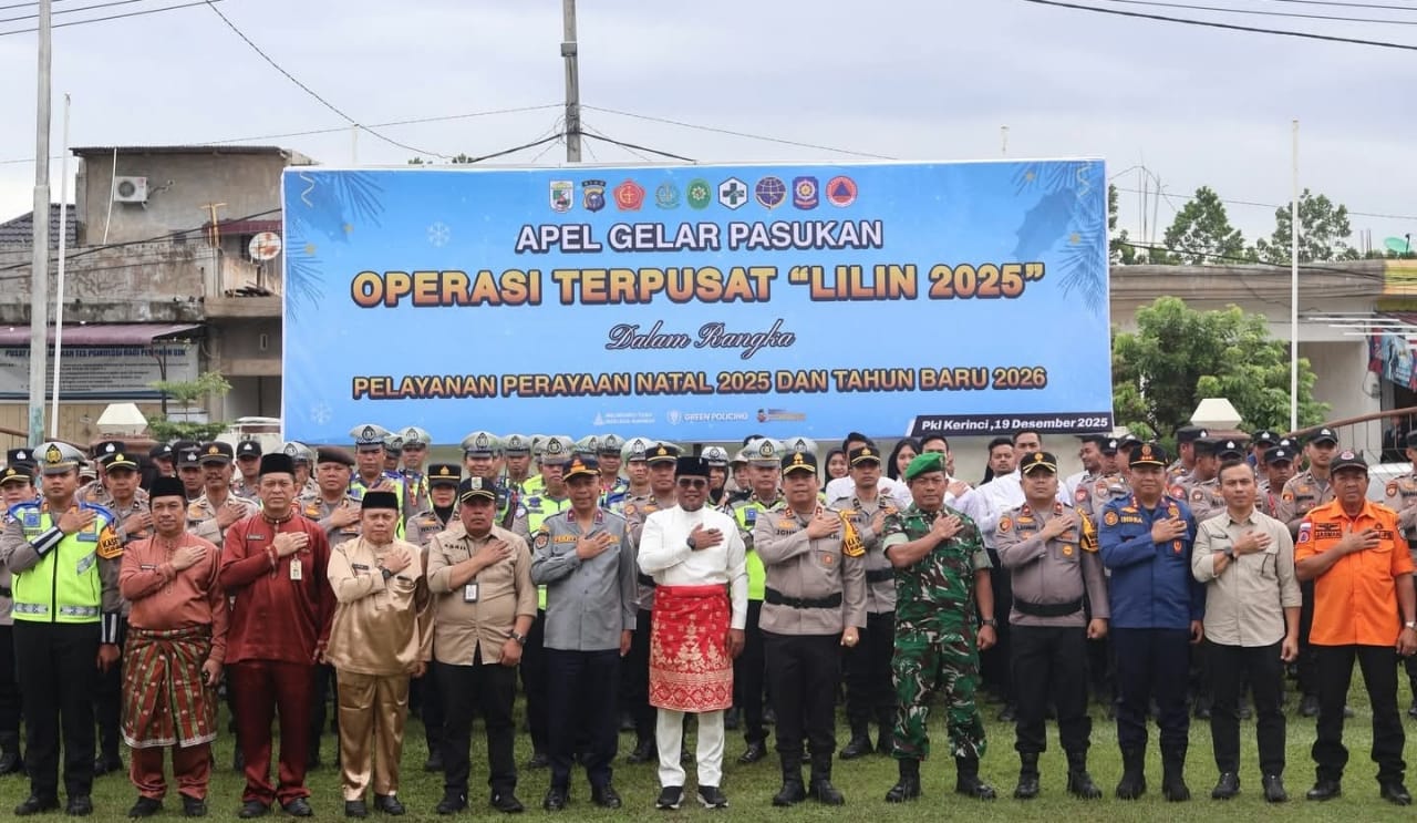 Pengecekan dilakukan terhadap 154 personil gabungan dan Sapras yang dikerahakan dalam gelar pasukan Operasi Lilin Lancang Kuning Tahun 2025 di halaman Polres Pelalawan, Jumat (19/12/2025).
