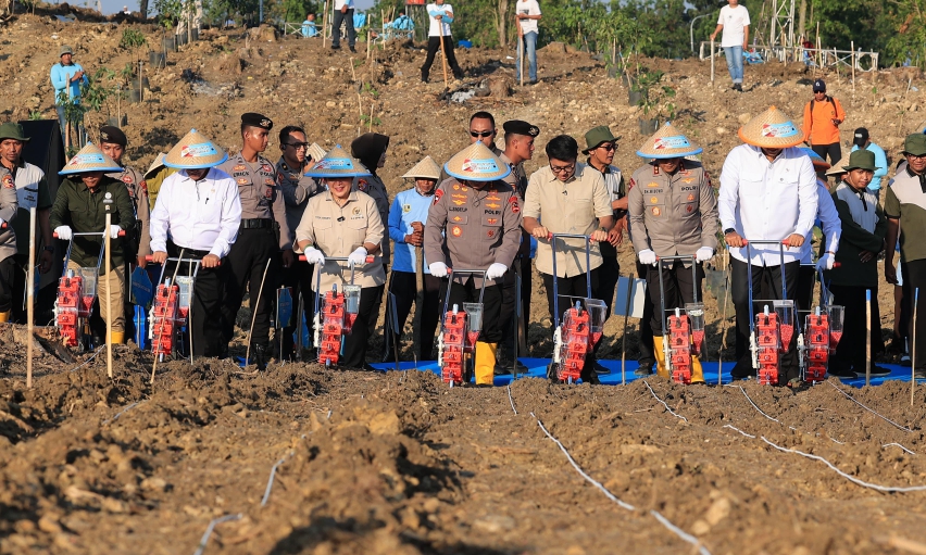 “Khusus hari ini, penanaman jagung dilakukan pada lahan seluas 38.750 hektar di Jawa Tengah, termasuk 207 hektar di Grobogan. Di lokasi ini sendiri, ditanami 74 hektar lahan perhutanan sosial,” tambah Kapolri.