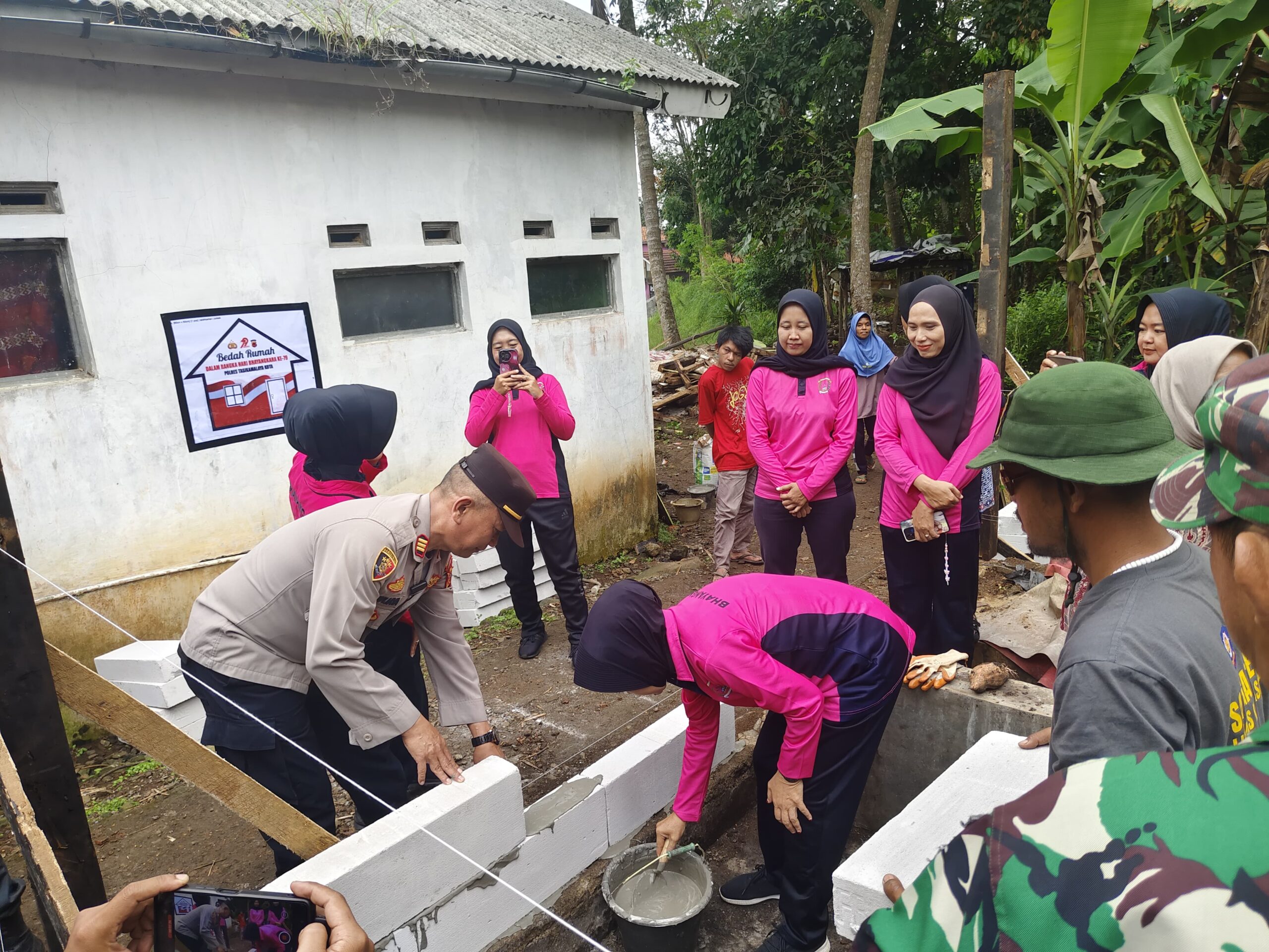 Polsek Manonjaya Polres Tasikmalaya Kota melaksanakan Bakti sosial bedah rumah untuk warga kurang mampu,dan sekaligus peletakan batu pertama,Selasa (17/6/2025).