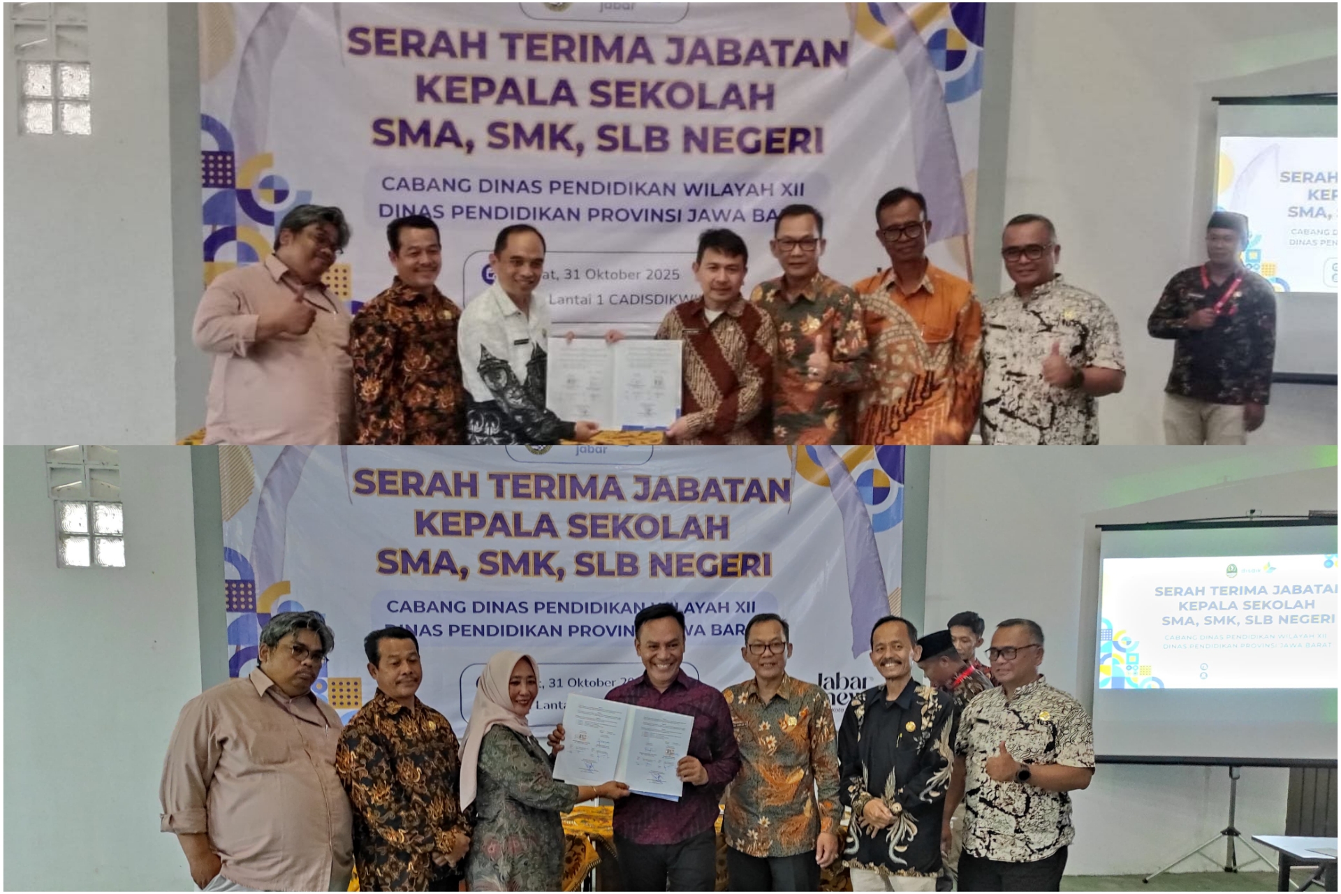 Kota Tasik,Hallo Berita Online.Com- Kantor Cabang Dinas (KCD) Wilayah XII Dinas Pendidikan Provinsi Jawa Barat melaksanakan Serah Terima Jabatan (Sertijab) sebanyak 44 Kepala Sekolah SMA, SMK dan SLB Negeri, di Aula KCD XII Jalan Karikil Kecamatan Mangkubumi, Kota Tasikmalaya, Jum’at (31/10/25).