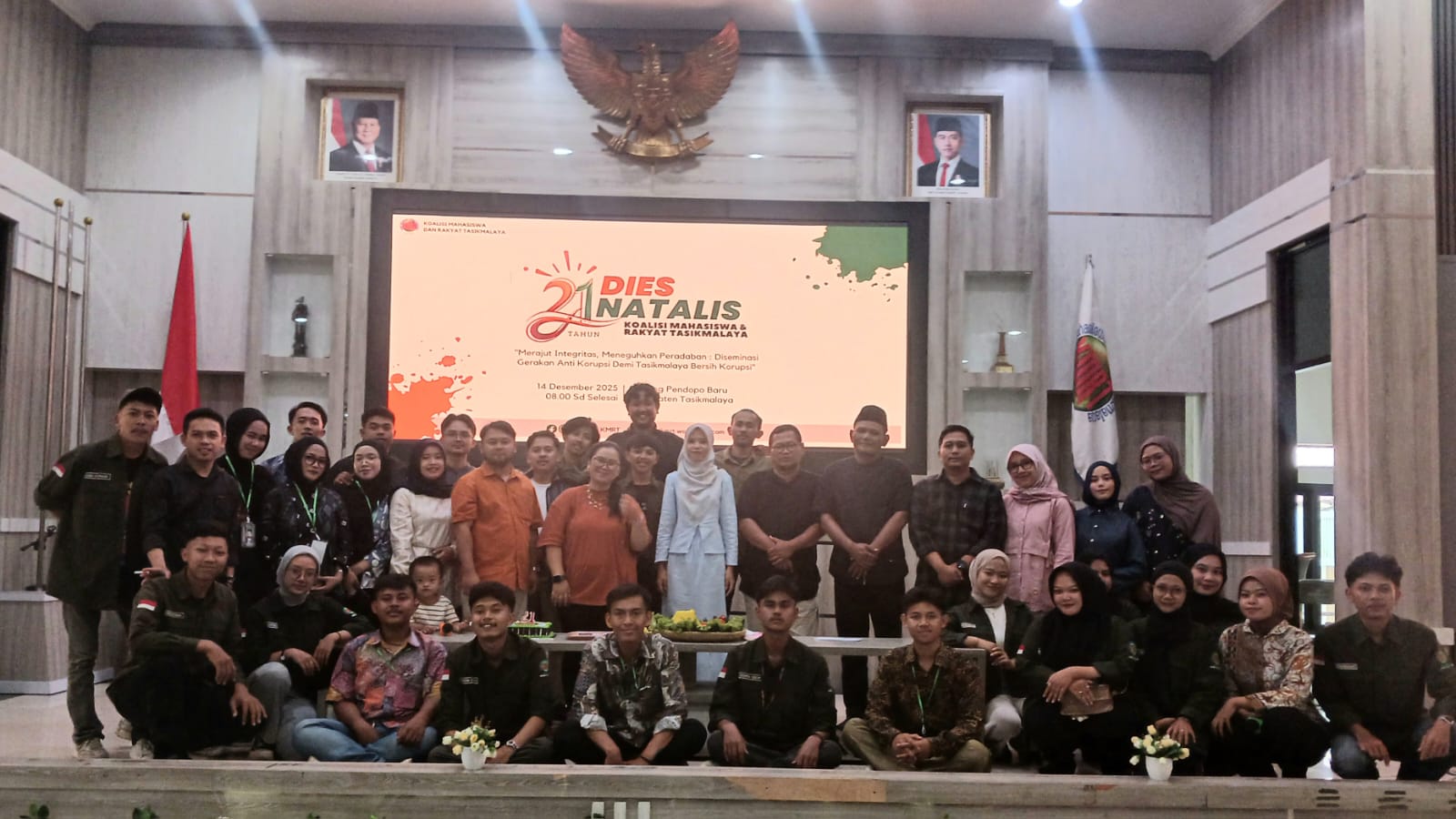 Koalisi Mahasiswa dan Rakyat Tasikmalaya (KMRT) memperingati Dies Natalis ke-21, dengan tema “Merajut Integritas, Meneguhkan Peradaban: Diseminasi Pergerakan Anti Korupsi demi Tasikmalaya Bersih Korupsi” , bertempat di Gedung Pendopo Baru Kabupaten Tasikmalaya, Minggu (14/12/2025).