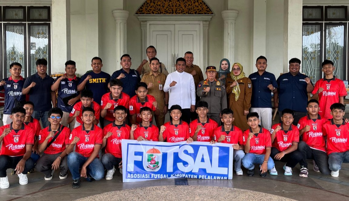 Pelalawan,Hallo Berita Online.Com-Bupati Pelalawan H. Zukri secara resmi melepas Tim Atlet Futsal Kabupaten Pelalawan yang tergabung dalam Asosiasi Futsal Kabupaten Pelalawan ( AFKAB ) untuk mengikuti Kejuaraan Daerah ( Kejurda ) Piala Gubernur, Selasa (21/4/2026 ), di rumah Dinas Bupati Pelalawan. Hadir pada kesempatan tersebut Kasatpol PP Tengku Junaidi, Kadispora Dodi Asma Saputra, Kabid PUPR, serta Kabid Dispora.