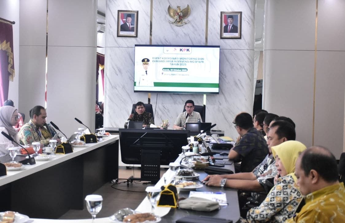Pemerintah Kabupaten Sumedang bersama Komisi Pemberantasan Korupsi (KPK) menggelar Rapat Koordinasi Tata Kelola Pemerintah Daerah dan Monitoring Evaluasi Area Intervensi MCP 2025, di Ruang Rapat Bupati Sumedang Pusat Pemerintahan Sumedang, Kamis (30/10/2025).