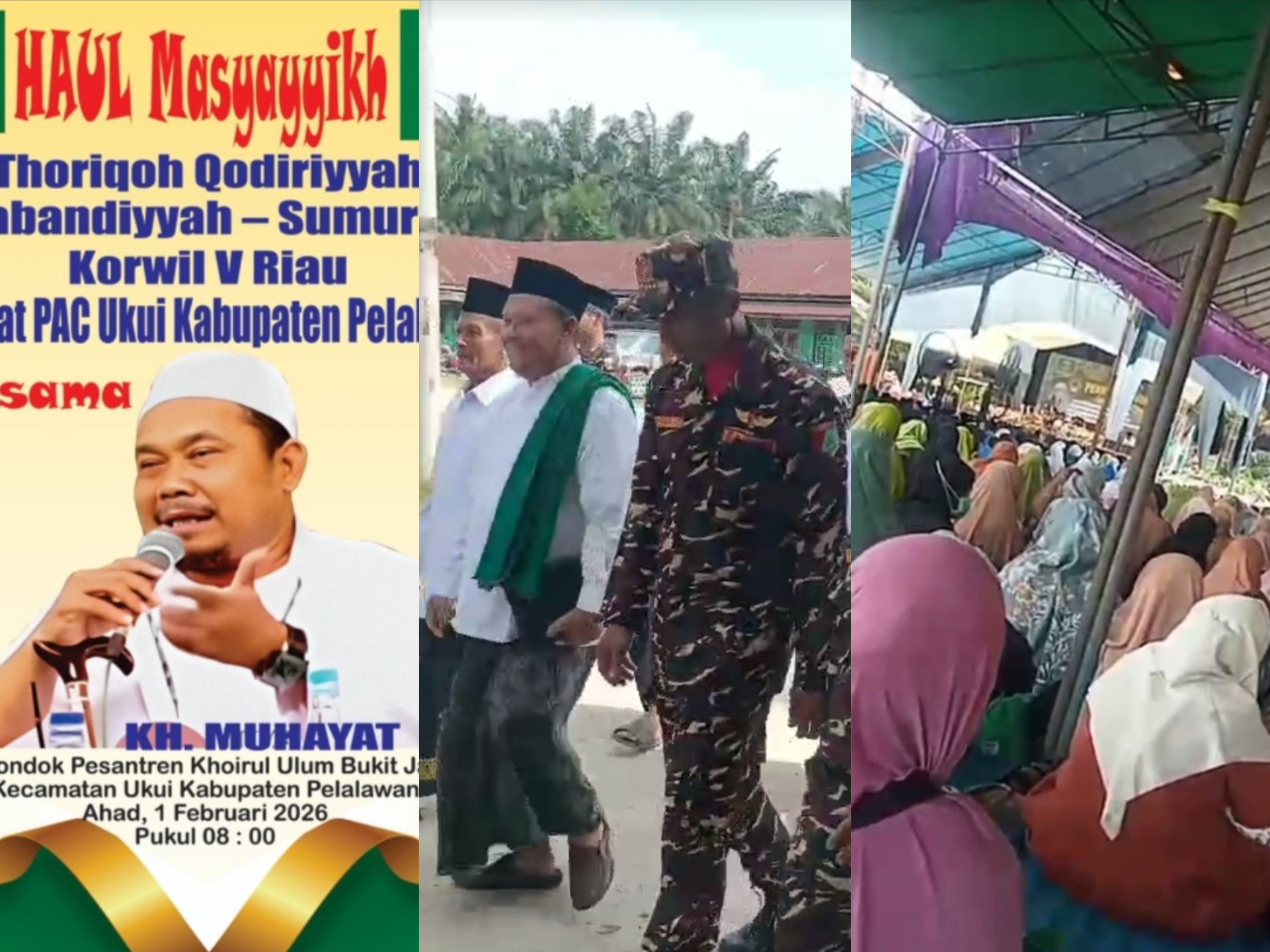 Kab Pelalawan,Hallo Berita Online.Com-Ribuan jamaah Thoriqoh Qodiriyyah Naqsyabandiyyah – Sumur Songo Korwil V Riau,memadati Pondok Pesantren Khoirul Ulum Bukit Jaya Kecamatan Ukui,Kabupaten Pelalawan, pada Minggu (1/2/2026).Mereka yang datang dari Kecamatan Ukui, Kecamatan Pangkalan Lesung,dan Kecamatan Kerumutan.