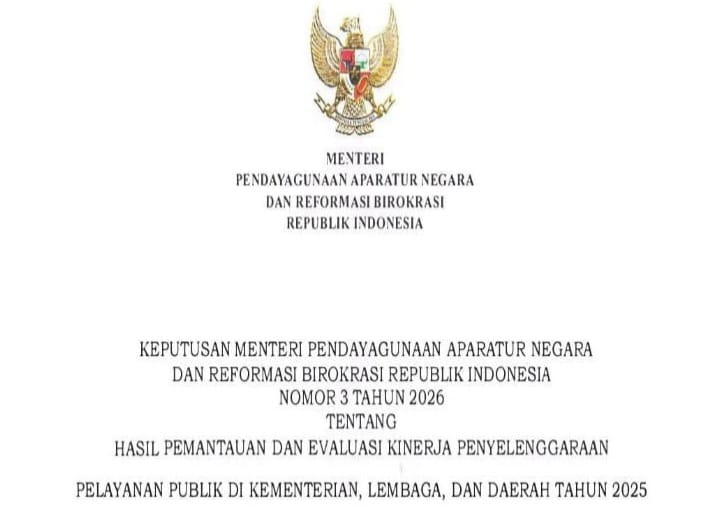 Purwakarta,Hallo Berita Online.Com-Pemerintah Kabupaten Purwakarta kembali menorehkan capaian positif di tingkat nasional. Berdasarkan Keputusan Menteri Pendayagunaan Aparatur Negara dan Reformasi Birokrasi Republik Indonesia Nomor 3 Tahun 2026, daerah ini berhasil meraih kategori A dalam Hasil Pemantauan dan Evaluasi Kinerja Penyelenggaraan Pelayanan Publik Tahun 2025.