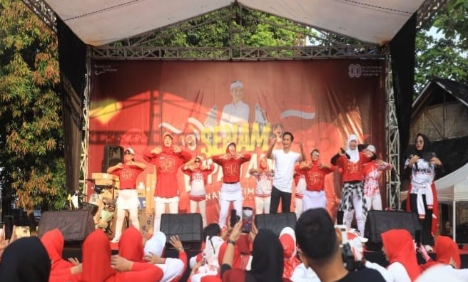 Purwakarta,Hallo Berita Online.Com- Alun-alun Taman Pasangrahan Padjajaran Purwakarta, dipenuhi ribuan warga, saat Bupati Purwakarta, Saepul Bahri Binzein, menghadiri kegiatan senam bersama yang bertajuk, Senam Bersama Bupati Aing, pada Minggu, (10/8/2025).