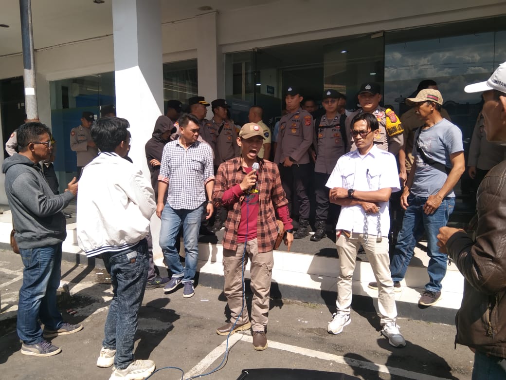 Puluhan masyarakat yang tergabung di Dewan Pimpinan Daerah Lembaga Pemberdayaan Masyarakat (DPD LPM) Kabupaten Tasikmalaya menggeruduk sala satu kantor Badan Usaha Milik Daerah (BUMD),di Kecamatan Rajapolah, Kabupaten Tasikmalaya, Jawa Barat, Kamis siang (11/12/2025).