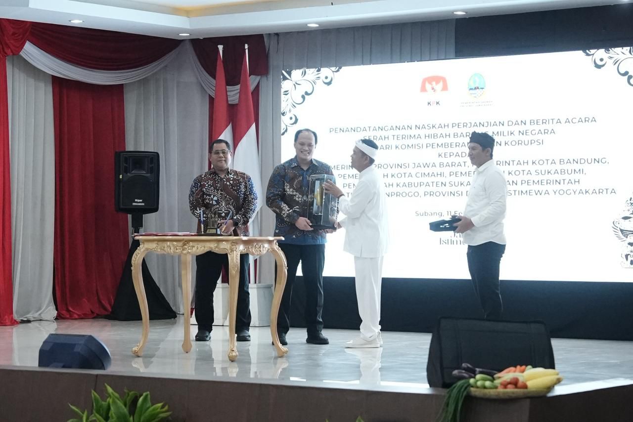 Subang,Hallo Berita Online.Com-Kabupaten Subang menjadi tuan rumah pada Penandatanganan Naskah Perjanjian dan Berita Acara Serah Terima Hibah Barang Milik Negara dari Komisi Pemberantasan Korupsi (KPK) kepada sejumlah pemerintah daerah, di Aula Haji Oman Sahroni, Kantor Pemerintah Daerah Kabupaten Subang,Rabu (11/2/2026).