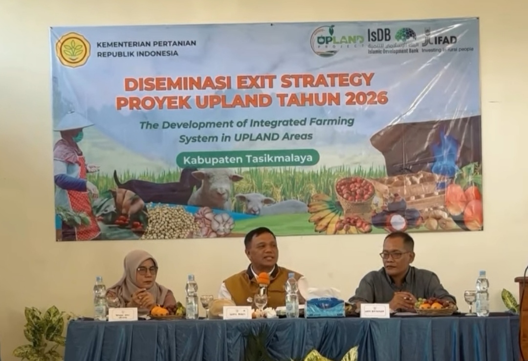 Wakil Bupati Tasikmalaya, Asep Sopari Al-Ayubi,melakukan kunjungan kerja ke Badan Usaha Milik Petani (BUMP) Wangsawinata dan sekaligus membuka acara Diseminasi Exit Strategy Program UPLAND 2026,di Kecamatan Sukahening, Kabupaten Tasikmalaya, Jumat (10/4/2026)