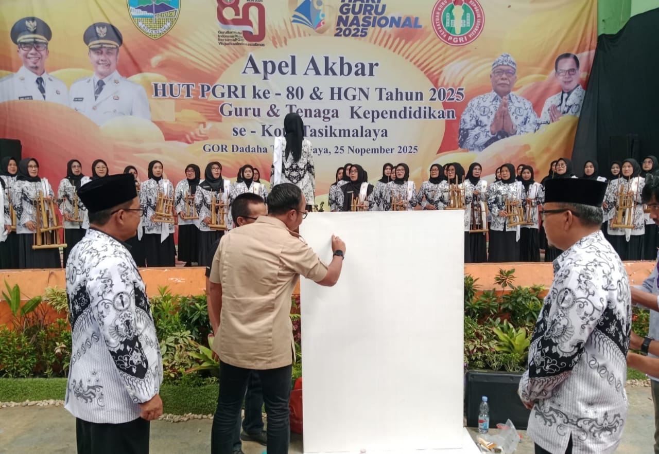 Hal tersebut disampaikan Wali Kota, Tasikmalaya Viman Alfarizi Ramadhan, ST., MBA, dalam Apel Akbar HUT PGRI KE-80 & HGN Tahun 2025 Guru & Tenaga Kependidikan se-Kota Tasikmalaya, di