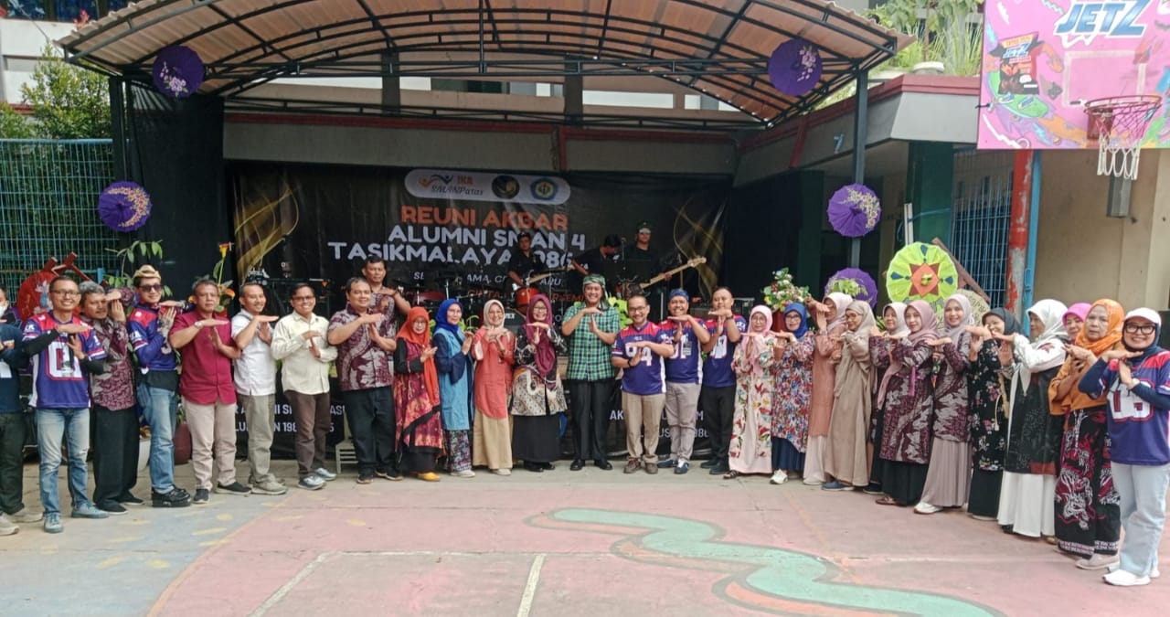 Kegiatan Reuni Akbar Alumni SMA Negeri 4 Tasikmalaya Lulusan dari tahun 1986 sampai dengan lulusan tahun 2025 dengan mengusung tema “Reuni Bukan Ajang Cinta Lama Bersemi Kembali Tetapi Ruang Untuk Berdamai Dengan Masa Lalu Dan Mensyukuri Hari ini”.