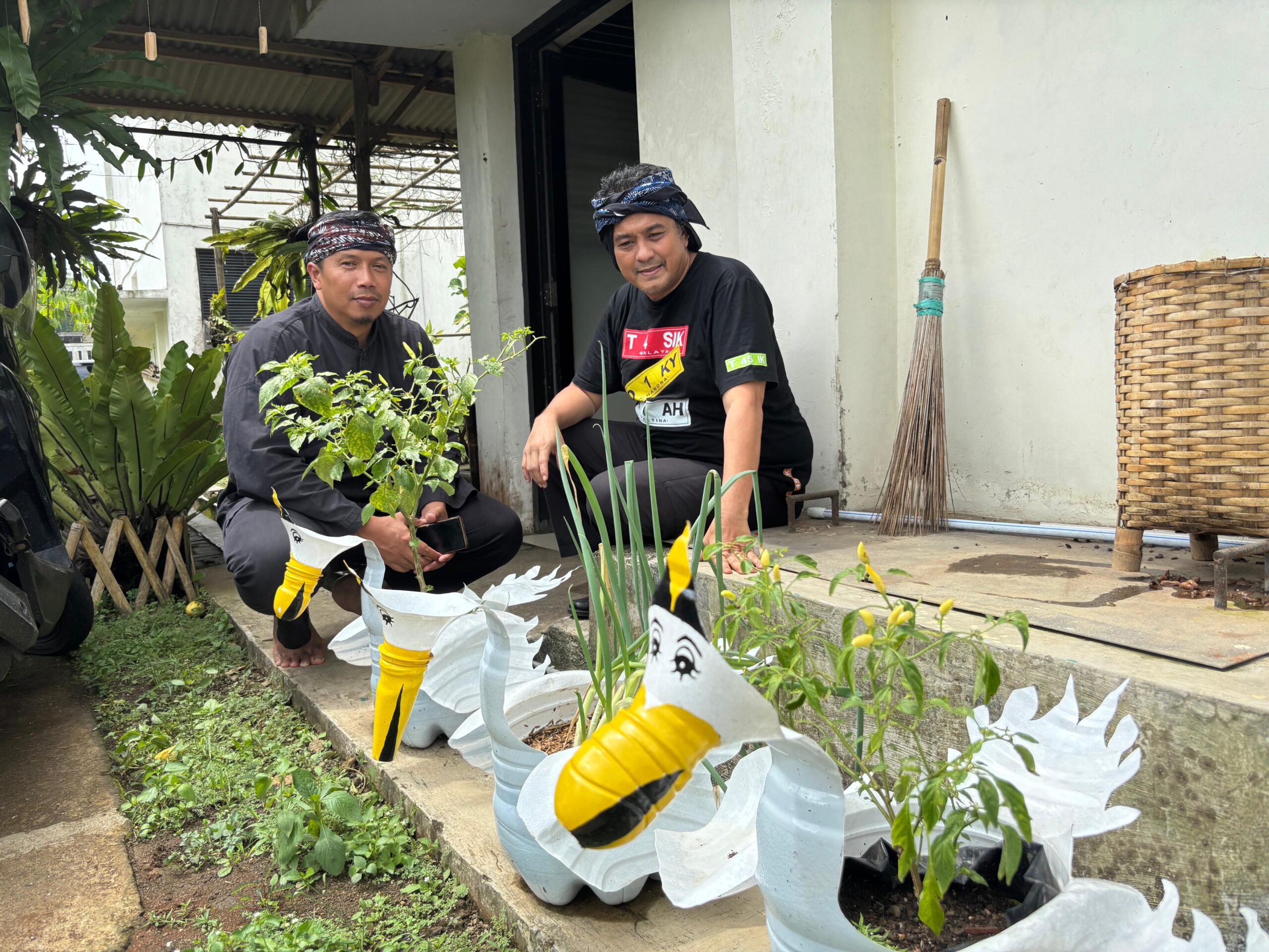 Tak hanya fokus pada sektor peternakan. KWT Margabakti juga menunjukkan kreativitas dengan memanfaatkan limbah galon air mineral menjadi pot tanaman berbentuk angsa yang unik dan bernilai estetika.